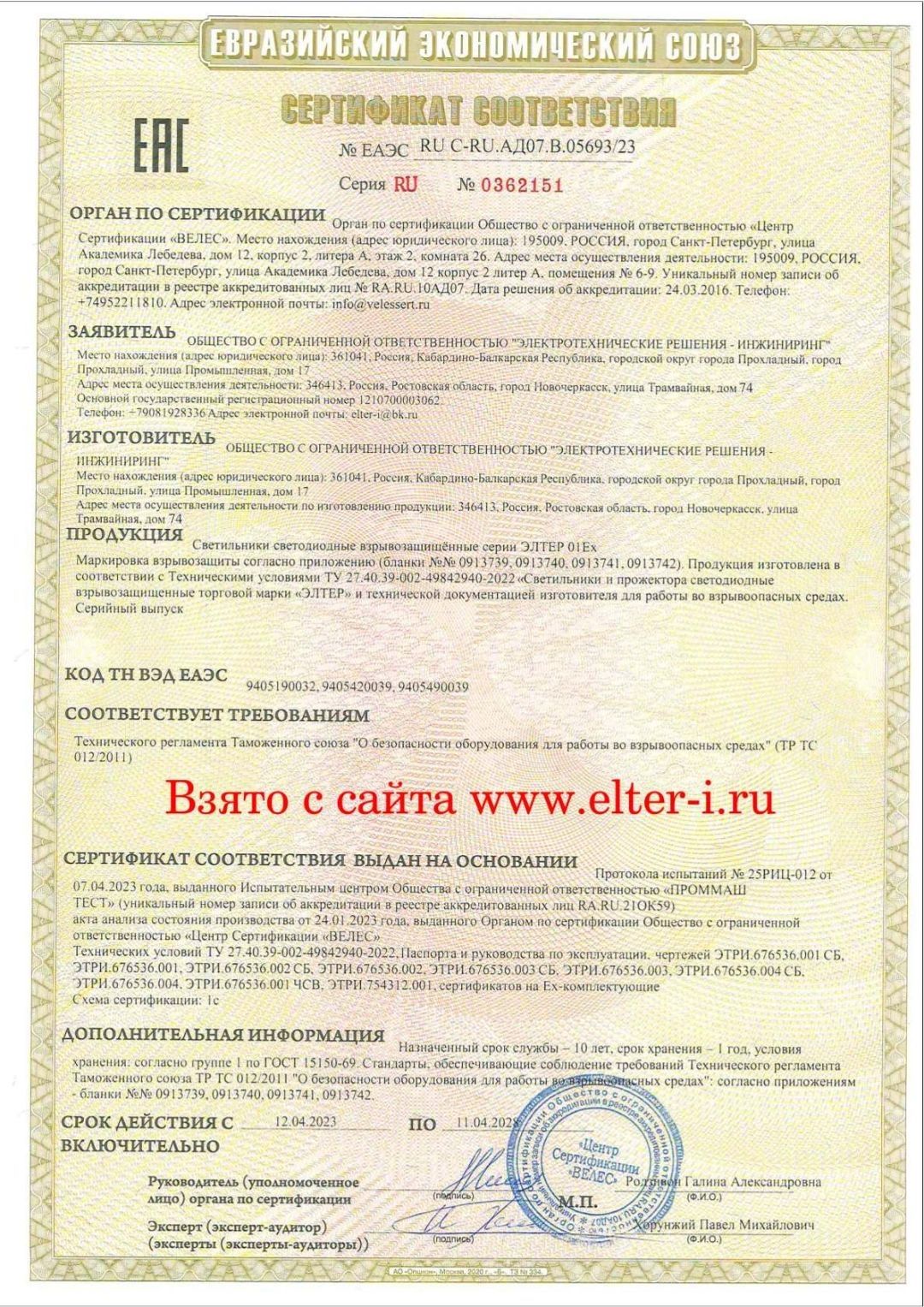 Светильник светодиодный взрывозащищённый серии ЭЛТЕР 01Ех (по ТУ 27.40.39-002-49842940-2022)